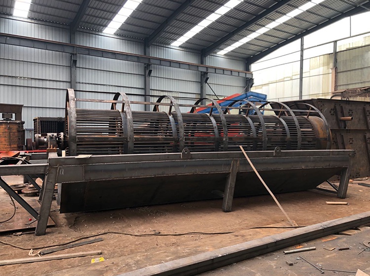 轉(zhuǎn)筒洗石機(jī)采用中心結(jié)構(gòu),螺旋葉片在筒內(nèi)壁上,由減速器連接到中心軸上進(jìn)行工作。借助固體顆粒的比重不同,因而在液體中沉降的速度不同的原理,進(jìn)行機(jī)械清洗的一種設(shè)備。滾筒洗石機(jī)的清洗筒體有鋼架支撐,電機(jī)帶動減速機(jī),皮帶動清洗筒體低速旋轉(zhuǎn)。含有泥團(tuán)和石粉的骨料自進(jìn)料口給入,進(jìn)入旋轉(zhuǎn)的滾筒內(nèi),被清洗滾筒內(nèi)安裝有一定角度的耐磨橡膠襯板不斷帶起拋落,自進(jìn)料端到出料端移動過程中多次循環(huán),并被順向或逆向的沖洗水沖涮洗滌,清洗干凈的骨料經(jīng)過卸料端筒篩篩分脫水后排出。含有污泥的廢水則通過出料或給料端的帶孔擋板流出。